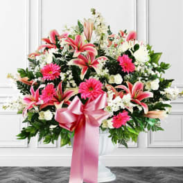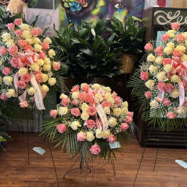 Price: $2,225.00 Monochromatic Casket Spray, Easel Wreath, Dual Vase Arrangements Product Tags: Next-day Delivery